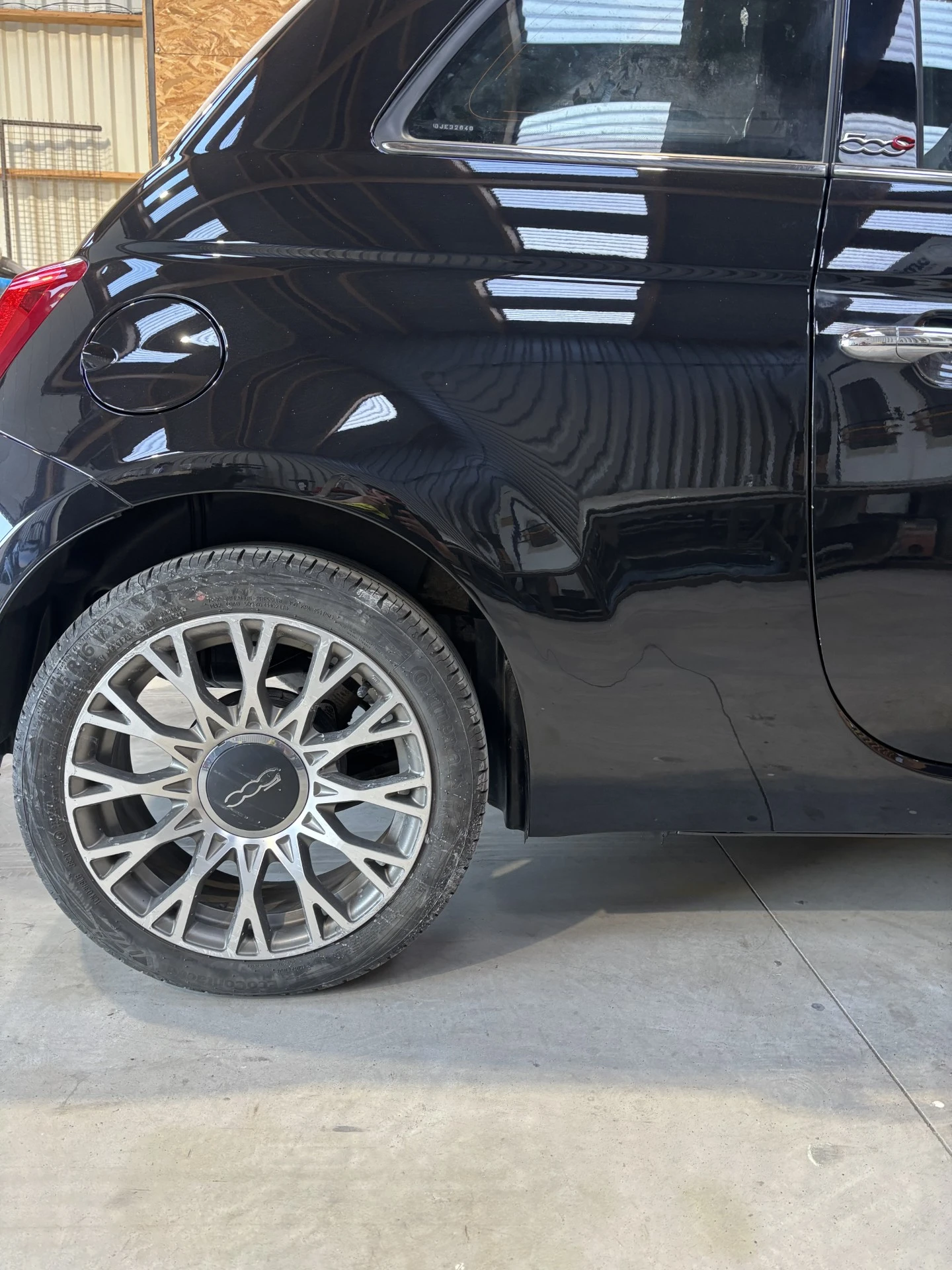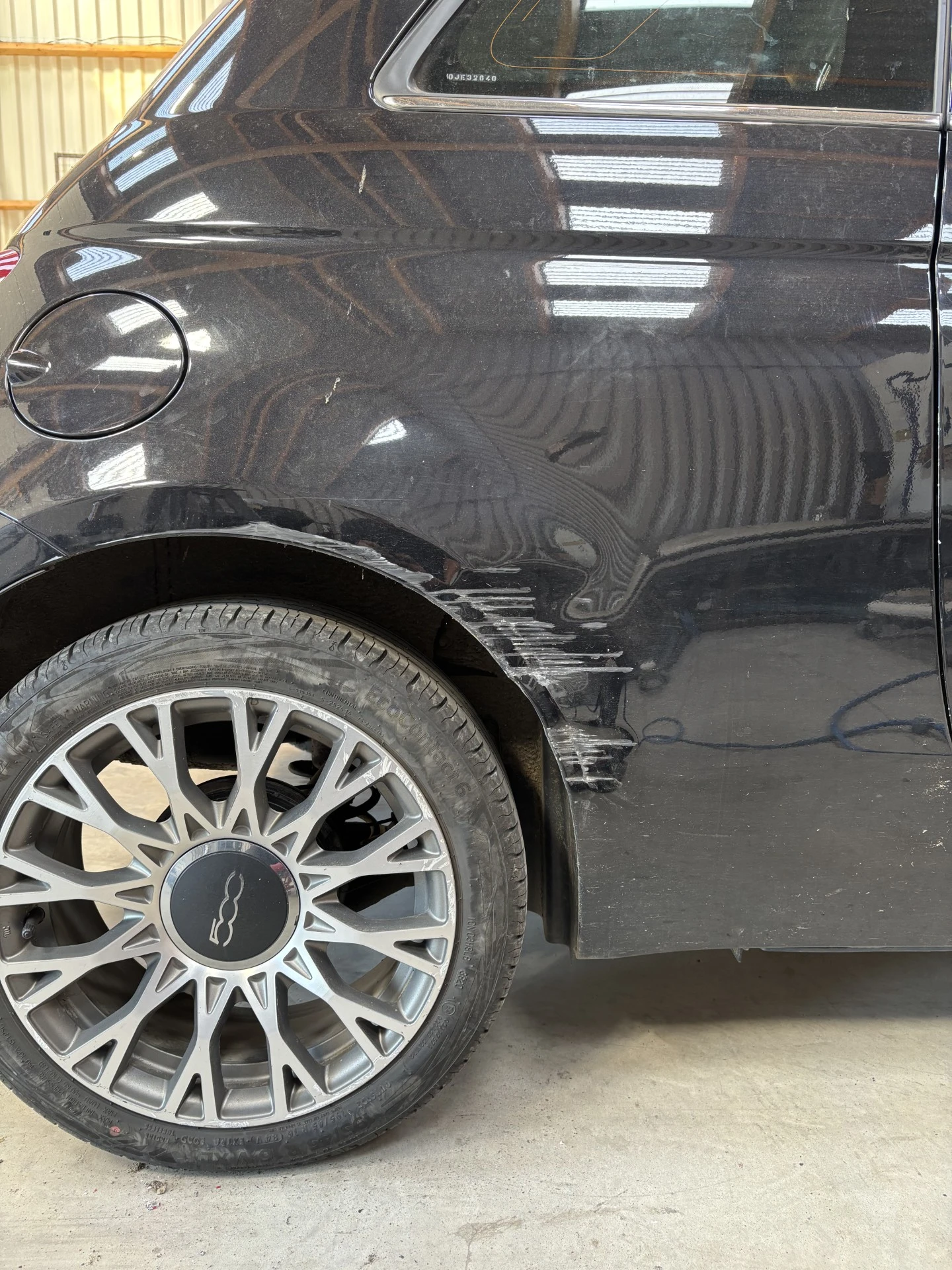 REMISE EN ETAT AILE ARRIERE DROITE FIAT 500 PREPARATION DE L'ELEMENT REDRESSAGE DE L'AILE AU TIR CLOU MISE EN MASTIC DE FINITION MISE EN APPRET MISE EN PEINTURE MISE EN VERNIS